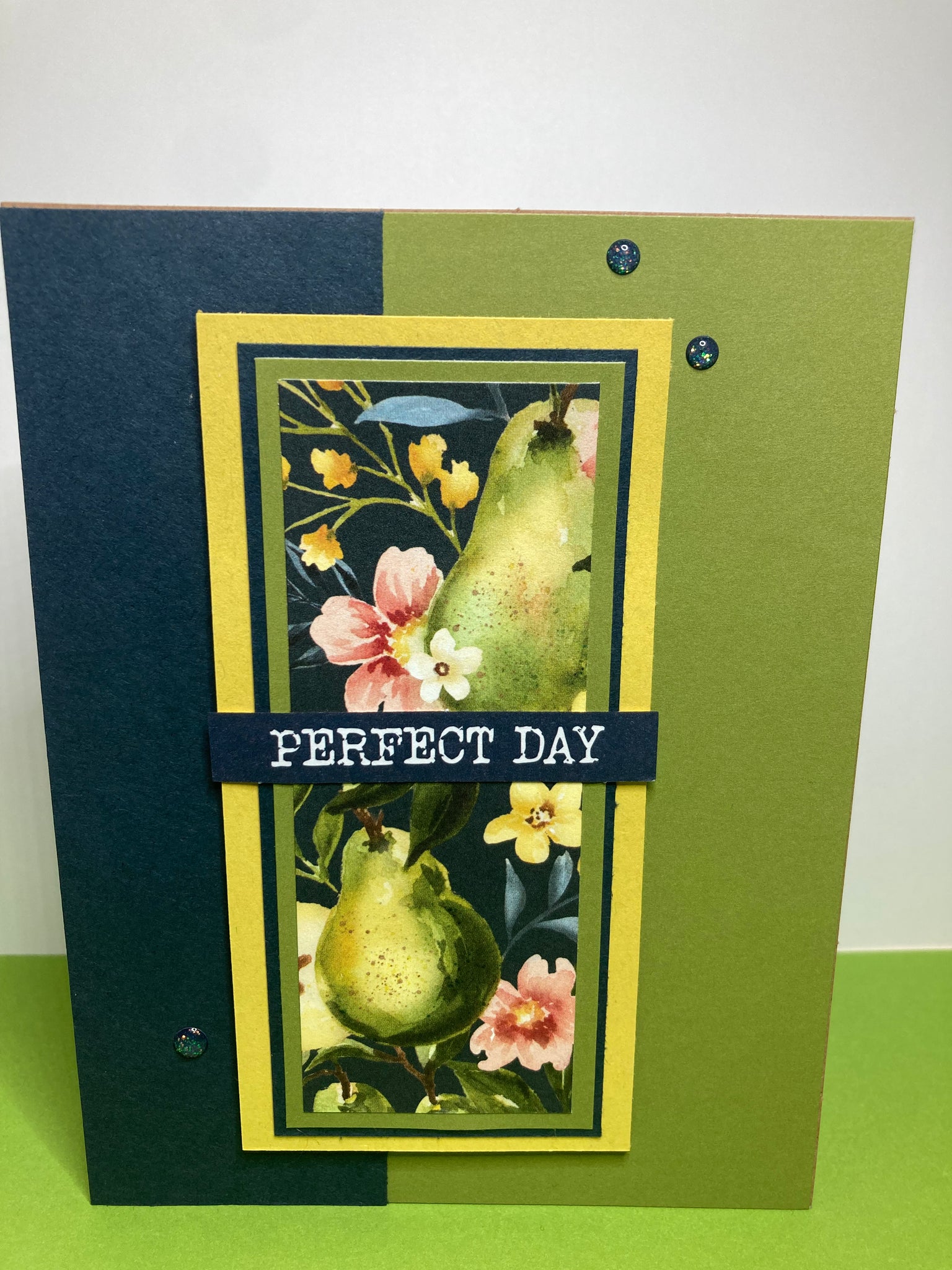 Featuring Quality Stampin Up Paper from the Painterly Pears Collection Ribbon and Embellishments.